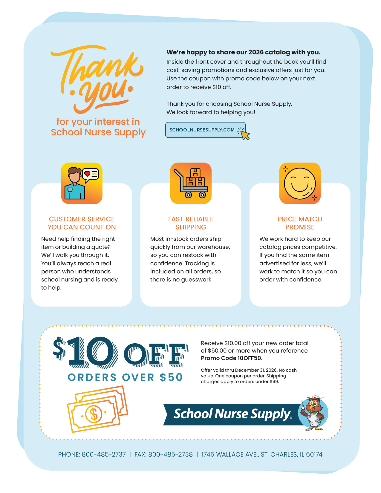 School Nurse Supply is a small niche business located in St. Charles, IL. In this role, Lori is responsible for an annual 270-page catalog featuring 12 sections of products used by school nurses. Lori also creates sales collateral such as flyers, convention materials, etc. In addition she has supported the redesign of their Shopify e-commerce website by creating product images, and even a slight refresh of their logo by adding a banner and simplifying typography.